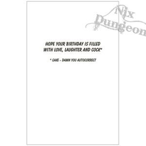 Inside Message: “HOPE YOUR BIRTHDAY IS FILLED WITH LOVE, LAUGHTER AND COCK*” “*CAKE – DAMN YOU AUTOCORRECT”