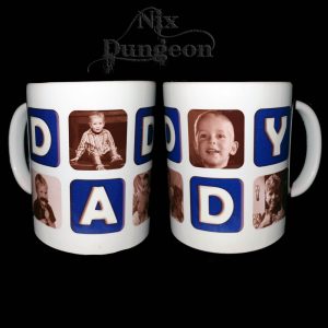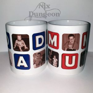 This personalised mug is the perfect gift for Mummy, Daddy, or pretty much any other 5 letter word name or title! You could utilise just the 3 middle blocks and add a 3 letter name! We can even customise the colour used in the letter blocks. You tell us what you want!