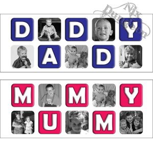 You will also need to supply us 5 photos to be used in the photo blocks (7 if using a 3 letter name), we will grayscale these to suit, design your mock-up for you, and send to you for approval prior to printing!