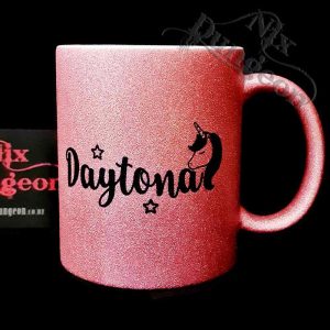 I am pretty sure we all have someone in mind that would love this mug! “Always be yourself, unless you can be a unicorn, then always be a unicorn” with a name on the opposite side in black permanent text. All printed on your choice of Silver, Blue or Pink glitter mug
