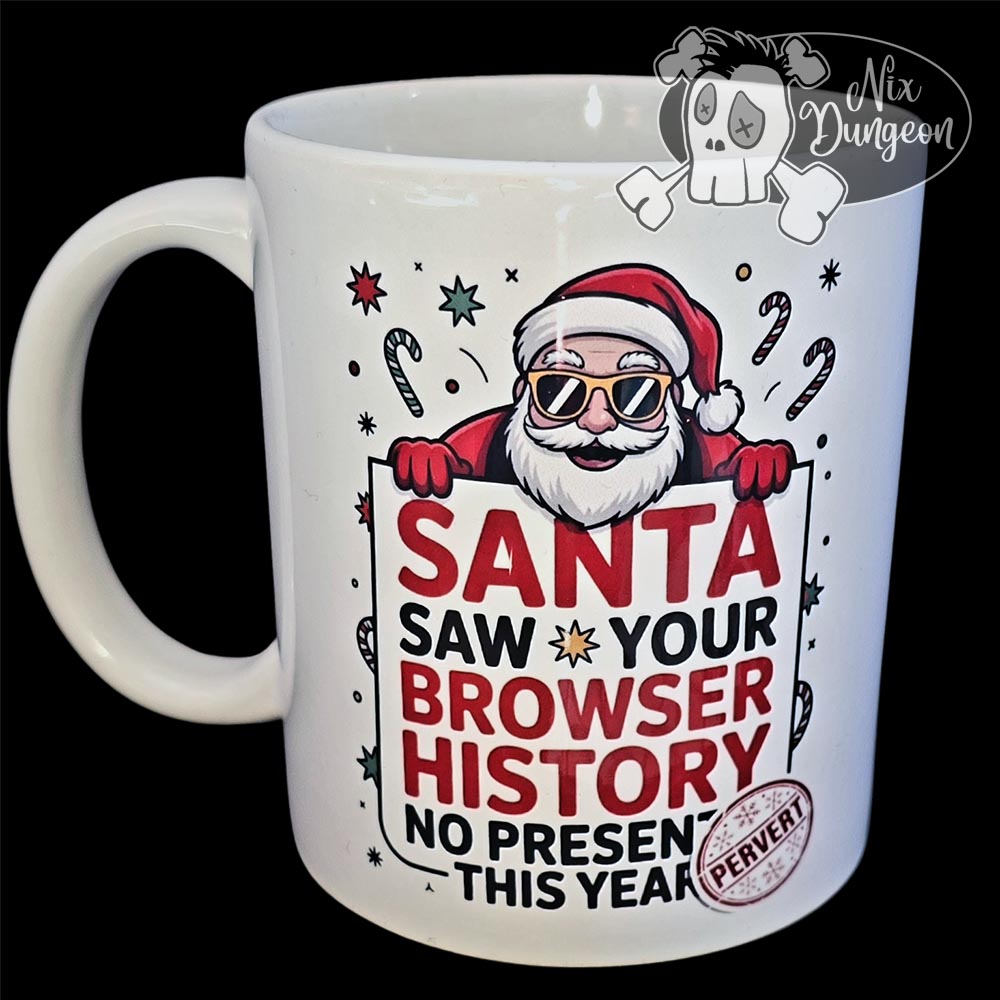Mug reads: “Santa saw your browser history. No presents this year – Pervert”