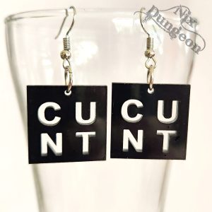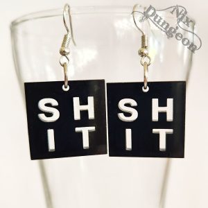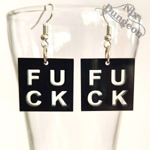 These hook earrings are laser cut by Nix Dungeon from 3mm black cast acrylic. Each earring measures 24mm square and hangs from a stainless steel hook finding.